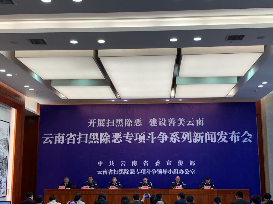 雲南省公安廳副廳長鬍祖俊通報,掃黑除惡專項鬥爭以來,全省各級公安機關緊盯群眾反映強烈問題,始終將打擊鋒芒對準人民群眾反應最強烈、最深惡痛絕的各類黑惡犯罪,打掉了一批欺壓百姓橫行鄉里、侵蝕基層政權、非法暴力討債、跨境綁架拘禁和「黃賭毒」、「套路貸」黑惡團伙。