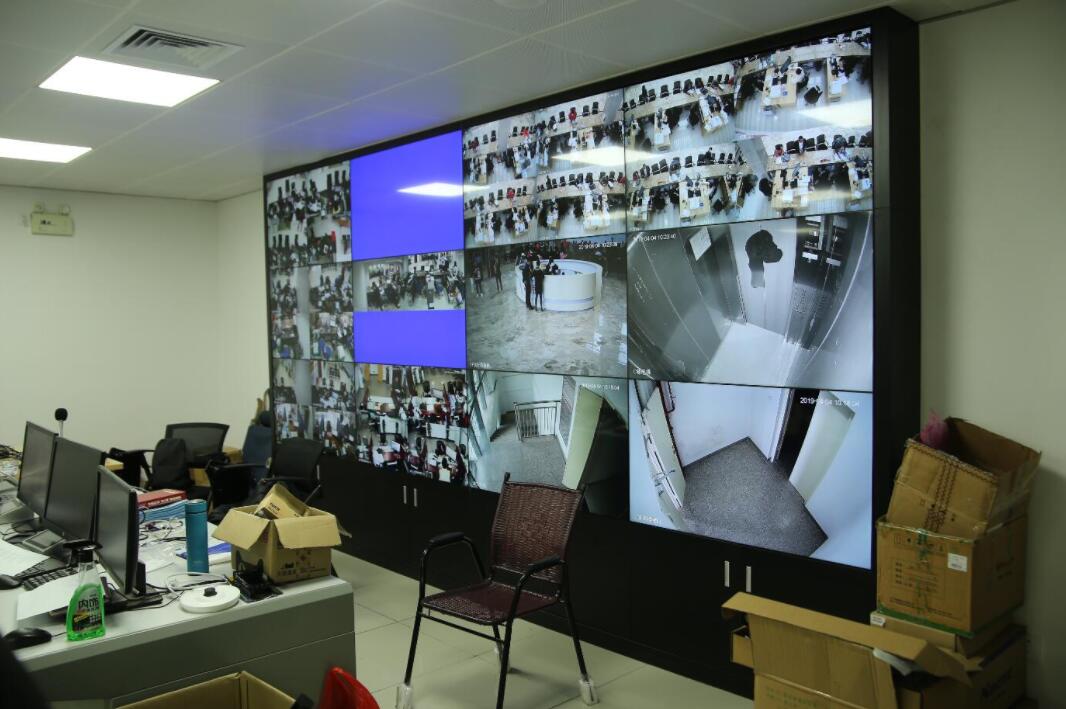所有的窗口和辦公區域出入口和重要區域都設置了監控,並把10個分中心的監控接入市區管理部,實現統一管理,並建立監控把市區管理部和分中心監控實時傳輸到大屏上,所有的監控錄像都會保存到陣列硬盤中,供回放查看。