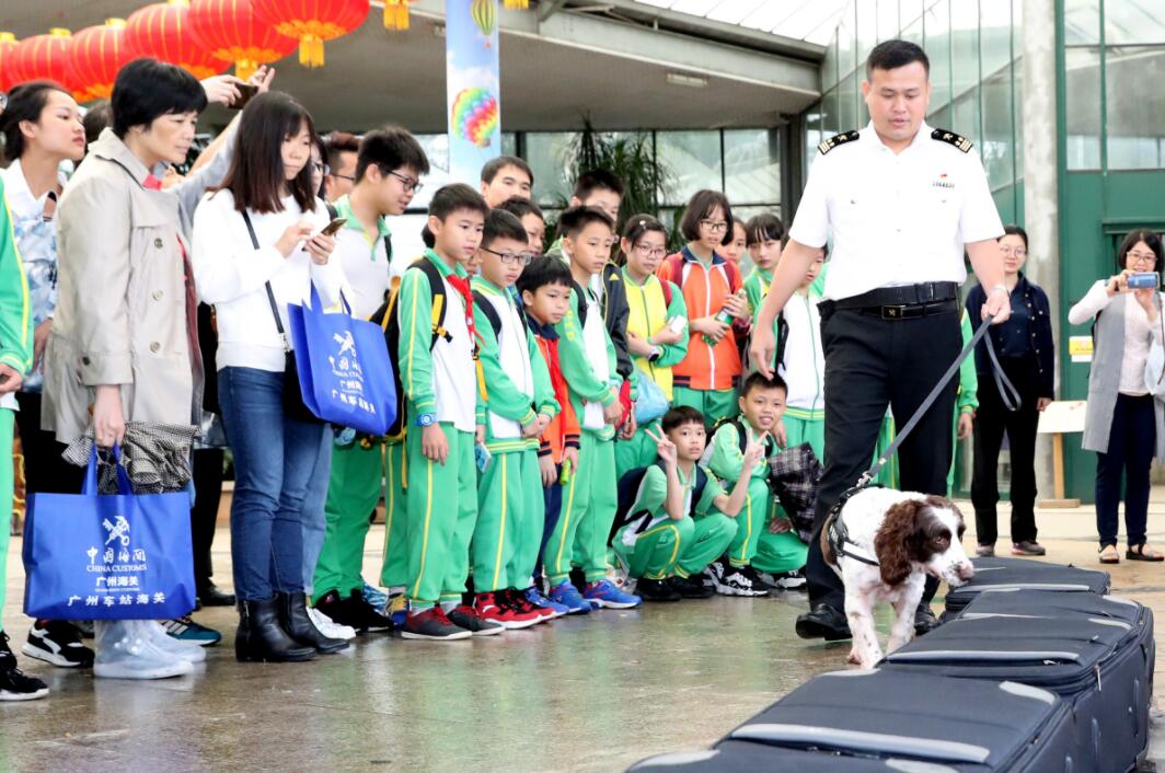 活動現場,在廣州海關監管工作犬表演環節,服役6年的「歡歡」閃亮登場。歡歡是一隻史賓格犬,更是一隻經驗豐富「戰功累累」的工作犬,在多次技能比賽中獲得好成績,服役期間累計查獲各類違禁物品2100多批次。