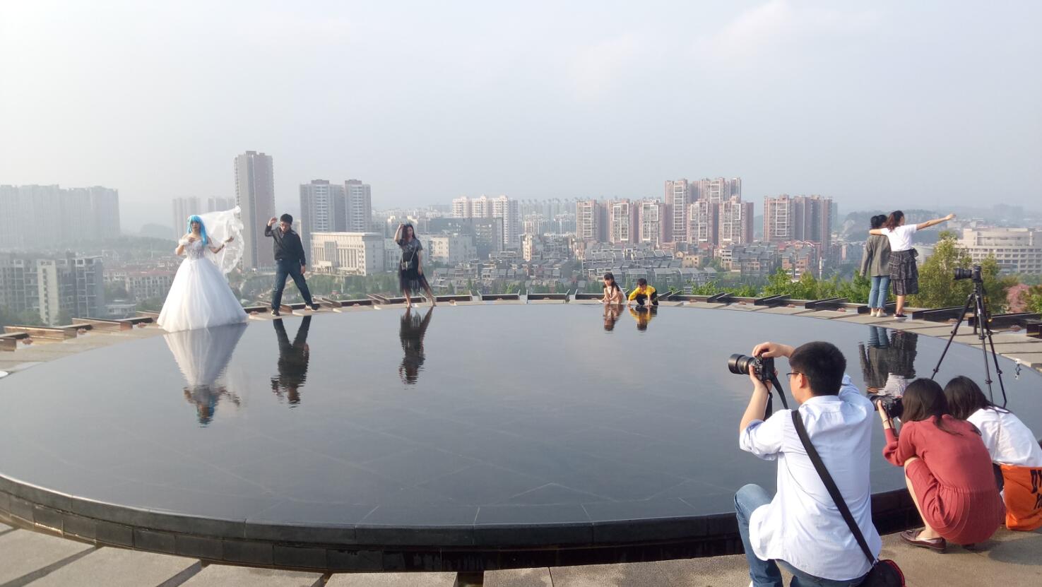 明鏡台周邊的圓形木質檯面寓意人生輪迴,上面點綴的蓮花象徵「心有蓮花,花開見佛」。登上空山遠眺靜思,學會冥想學會放下,是對人生的理解,也是追求的心靈境界。