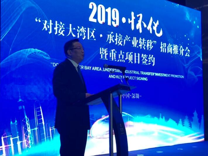 【香港商報網訊】記者 唐竟淳 報導:4月14日,2019年湖南省懷化市“對接大灣區·承接產業轉移”招商推介會暨重點項目簽約儀式在深圳舉行,廣藥集團、廣發集團、京東集團、華潤集團等100余家知名企業“擠滿”招商會現場,為本屆港洽周打響了“頭炮”!據悉,活動現場簽約24個項目,合同金額達139.6億元。懷化市委副書記、市長雷紹業出席活動並熱情洋溢地向與會客商分享“甜甜的懷化故事”。