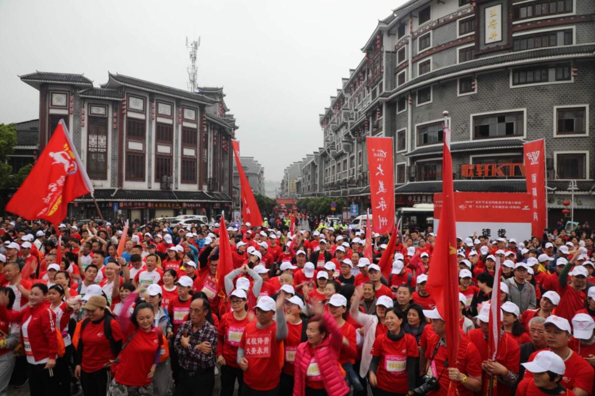 【香港商報網訊】4月14日上午,由湖南省體育局、永州市政府主辦,永州市文化旅遊廣電體育局、零陵區政府承辦的2019「走紅軍走過的路,徒步穿越大湘南」暨「大美永州」 (零陵)大穿越活動在零陵東山景區廣場盛大開幕!9時15分,隨着發令槍聲的響起,2000餘名戶外運動愛好者迎著雨邁著堅定的步伐,帶着必勝的信念,踏上這片擁有2100年建城歷史的土地,開始了大穿越之旅。