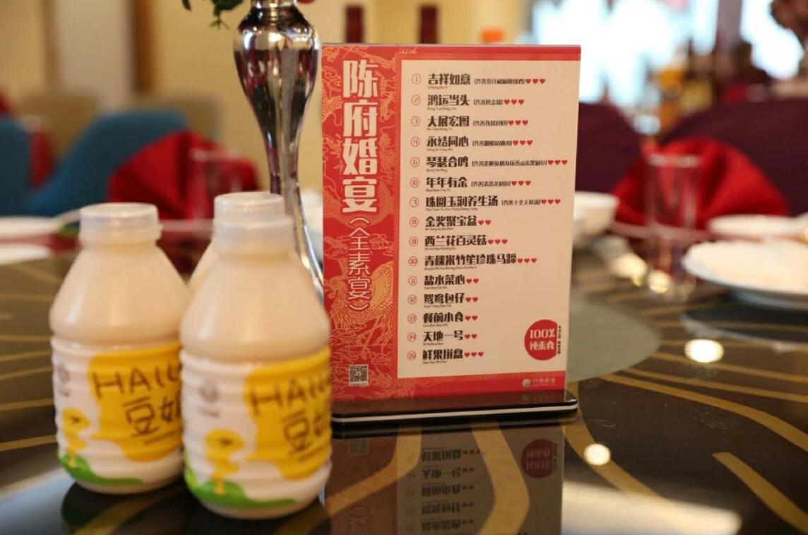 【香港商報網訊】記者 蘇偉 報導:在廣東省廣州增城新區,近日舉辦了一場盛大的全素婚宴。全場32桌全素宴,無肉無煙無酒的環境下,齊善全素七道菜,齊善植物飲品hallo豆奶、音樂、鮮花簇擁着幸福,芬芳裝點着喜悅中,舉行了當天的素婚宴。出席婚宴的親朋好友無不被滿桌的美味佳肴驚呆了,更被齊善素食的色香味型俱全所折服。