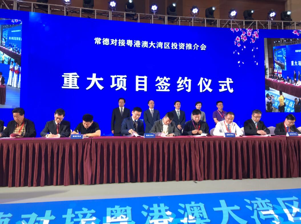 【香港商報網訊】記者 蘇偉 報道:「對接粵港澳大灣區活動,共簽約項目59個,總投資657.6億元」,4月15日,常德對接粵港澳大灣區投資推介會暨重大項目簽約儀式在深圳五洲賓館舉行。
