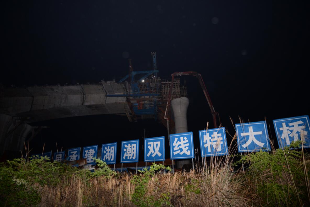 據了解,湖潮雙線特大橋全長2.5公里,共計76個墩台,是西南環線最長的特大橋之一,橋樑結構複雜,施工難度大,大橋平行於既有滬昆線,且連續樑上跨運油專線鐵路,施工地勢狹小,安全風險係數高。此次合龍的連續梁屬於較大跨徑的懸臂樑橋,故項目部採用菱形移動掛籃懸臂澆築施工,3組掛籃設備同時平行作業。掛籃是懸臂施工中的主要設備,可就地分段懸臂作業,它不需要架設支架,也不需要使用大型吊機,較其他方法而言,掛籃施工具有自重輕、拼裝簡單方便、無壓重等優點,並具有較強的可重複利用性,節約項目成本的同時有效縮短了工期。為保證既有線行車安全,項目部制定了施工安全保證措施和應急方案,對施工人員進行技術交底和崗前培訓,加強過程管控,定期安全檢查,確保了安全生產。