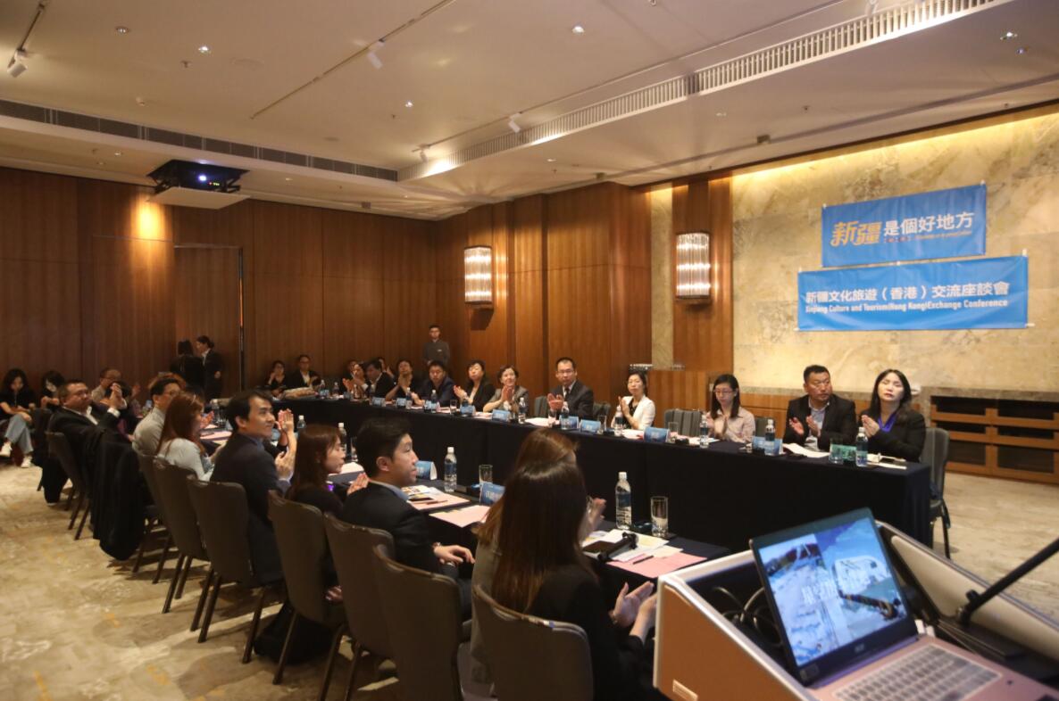 新疆維吾爾自治區文化和旅遊廳、新疆江布拉克旅遊開發建設有限公司、新疆國際大巴紮、烏魯木齊航空、新疆絲綢之路國際度假區、港中旅新疆國際旅行社等代表同來自香港國際經貿合作協會、香港國際華商觀光協會等多家企業負責人,就藉助協會搭建交流和招商引資平台進行了深入交流,尋求合作契機。