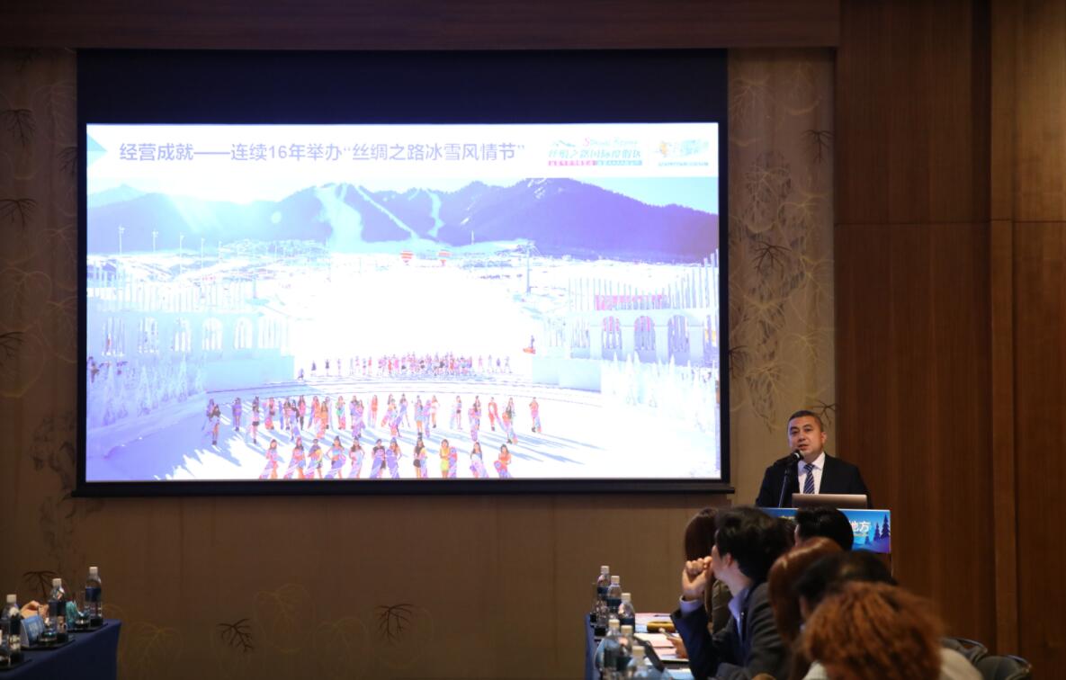 招商座談會上,新疆江布拉克旅遊開發建設有限公司、新疆國際大巴紮、烏魯木齊航空、新疆絲綢之路國際度假區、港中旅新疆國際旅行社招商項目代表分別進行了旅遊招商推介。