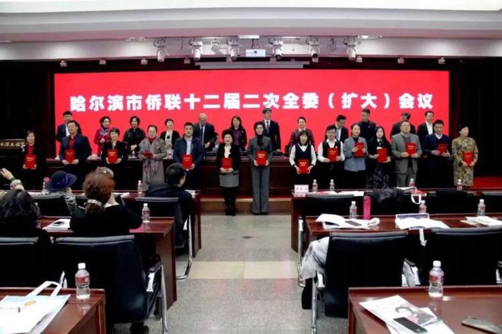 【香港商報網訊】4月18日,哈爾濱市僑聯十二屆二次全委(擴大)會議在友誼宮召開。會議傳達了中國僑聯和省、市有關會議精神,表彰了「僑文化藝術節」「慶祝改革開放四十周年」系列活動中湧現出的先進集體和個人,舉行了哈爾濱市僑聯「新僑創新創業聯盟」揭牌儀式,審議通過了哈爾濱市僑聯工作報告,研究部署了2019年市僑聯工作。市委統戰部副部長曹弘峰等領導和十二屆市僑聯主席班子成員、市僑聯常委、委員,以及各區、縣(市)、大專院校、企事業單位、市直機關僑聯主席、秘書長,受到表彰的先進集體和先進個人代表,市僑聯聯誼會部分代表,市僑聯海外顧問、僑界知名人士代表等130餘人參加會議。市僑聯主席陳佐東主持會議,市僑聯黨組書記、專職副主席申建平代表常委會作了《工作報告》,市僑聯黨組成員、秘書長楊為濤作會議總結。