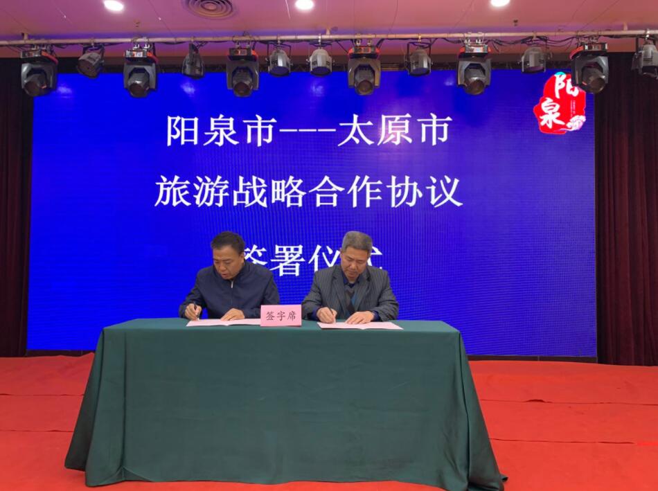 推介會上,陽泉市文化和旅遊局局長張立君對陽泉市旅遊形象和線路產品進行了宣傳推廣,盂縣大汖溫泉、娘子關、藏山等三個景區對各自的旅遊專案進行了重點推介,陽泉市各縣區對本地的旅遊項目進行了介紹。陽泉和太原兩市簽署了旅遊戰略合作協定。陽泉市交通集團萬通國際旅行社、陽泉恆信旅行社、陽泉吉祥旅行社、陽泉假日旅行社和山西尋根天下國際旅行社、山西旅遊自駕聯盟、山西教育國際旅行社、山西商務國際旅行社簽署了旅遊合作協定。