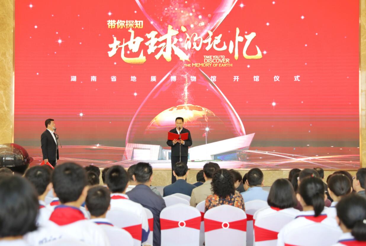 湖南省人民政府副省長陳文浩宣佈開館。中國地質博物館黨委副書記、副館長張亞鈞,湖南省自然資源廳黨組書記、廳長王一鷗,省自然資源廳黨組成員、副廳長賴馨正,省自然資源廳副廳長陳松嶺,省政府辦公廳、省科技廳、省水利廳、省文化和旅遊廳,省博物館、省科技館、省青少年活動中心等單位相關負責人出席儀式。