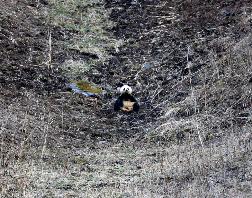 四川黃龍自然保護區工作人員在野外巡護的過程中拍攝到的野生大熊貓