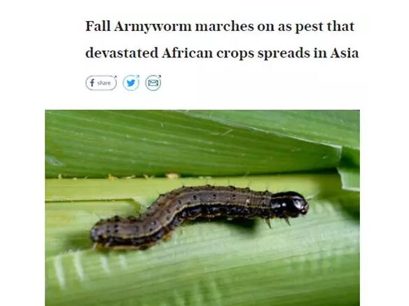 草地貪夜蛾起源於南美洲和中美洲,蔓延到了墨西哥、美國和加拿大。2016年,它首次出現在尼日利亞,兩年內入侵非洲 44個國家,由於幾乎沒有天敵,橫掃非洲各地玉米,造成玉米年減產830萬到2060萬噸。