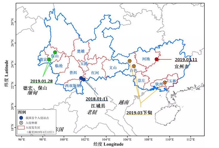 2019年1月11日,雲南省普洱市江城縣植保人員田間普查第一次發現了草地貪夜蛾幼蟲危害玉米,而且其蔓延速度出乎預期