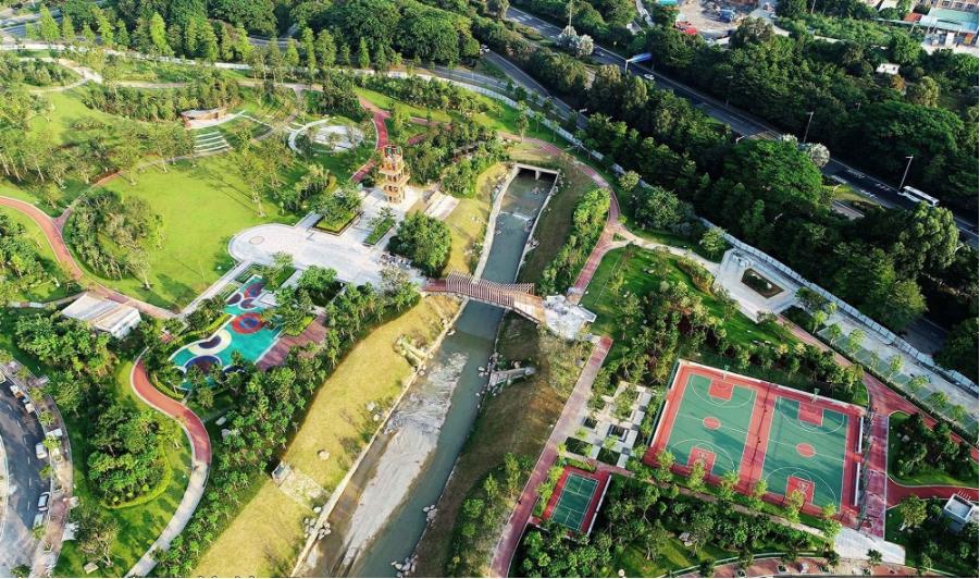 寮步香市科技產業園總佔地面積為1210000平方米,景觀綠化設計總面積162181平方米,綠化率達13.4%。其中,西南河種植水生植物品種有黑藻、苦草、梭魚草、水生美人蕉(橙、黃混合)、再力花、花葉蘆竹、常綠水生鳶尾、黃菖蒲、風車草等,種植面積約1100平方米;種植的濱水植物有類蘆、五節芒、小兔子狼尾草、金紅羽狼尾草、細葉芒、常綠芒、翠蘆莉、矮蒲葦、金葉石菖蒲、簕杜鵑(紅花)、夾竹桃(粉色)等,種植面積約達2500平方;城市公園、文藝公園、濱水公園和西南河兩岸種植的各類喬木數量達6214株。