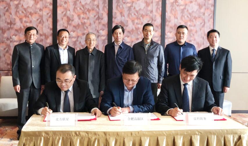 合肥高新區與雷科防務、東方聯星簽署協議, 工委書記、管委會主任宋道軍(後排右三)見證簽約