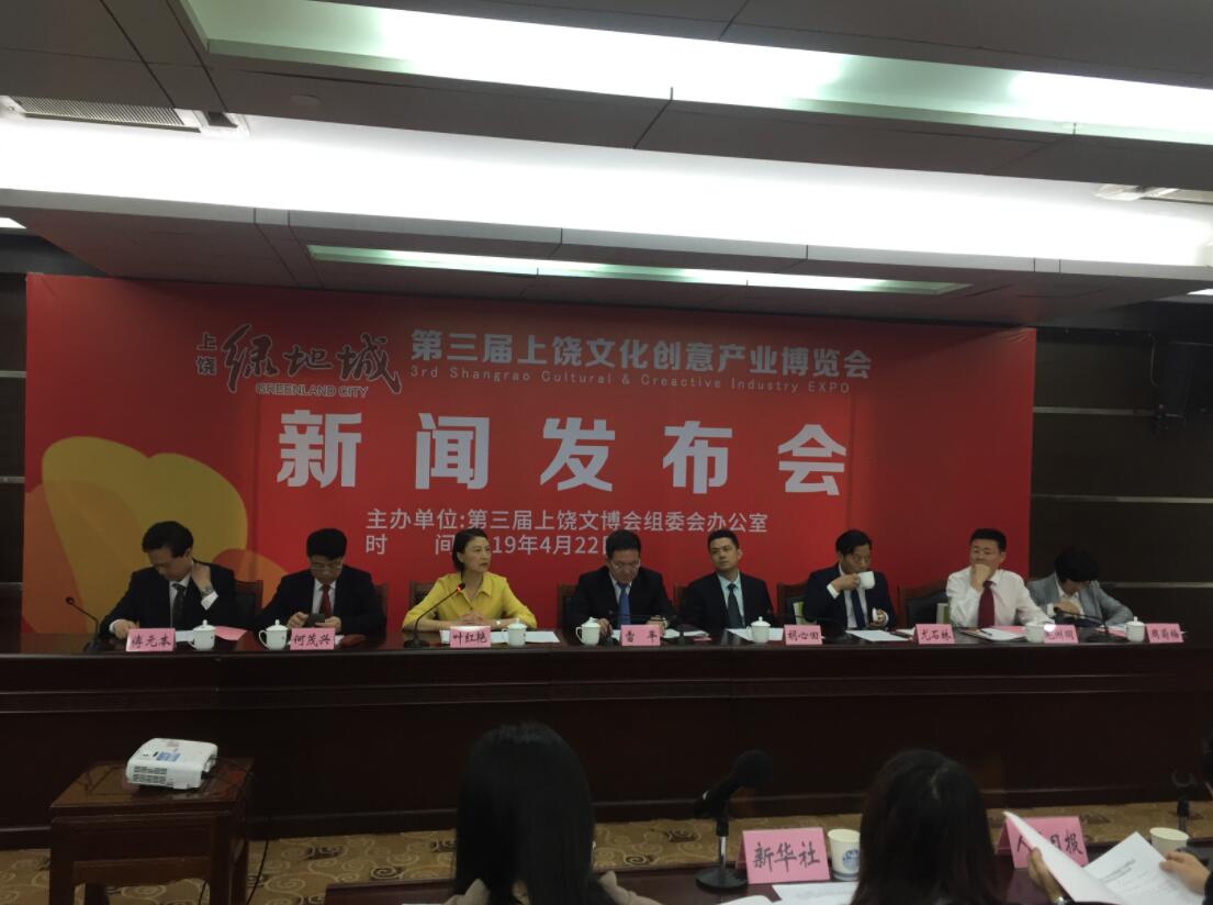 【香港商報網訊】4月22日,2019第三屆上饒文化創意產業博覽會新聞發佈會在信州國際會議中心舉行。上饒市委常委、副市長雷平、市委宣傳部副部長葉紅艷、市文廣新旅局局長毛傳榮、信州區委副書記、區長鬍心田參加新聞發佈會;雷平就文博會舉辦的籌備情況和影響力作了詳細解讀。