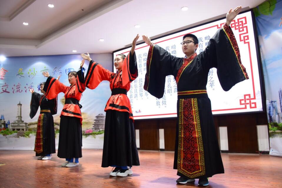 國學課是稻田中學學生的必修課,香港童軍在國學講堂裏和大家一起學習了《詩經·國風》裏的名篇——《木瓜》。「投我以木瓜,報之以瓊琚。匪報也,永以為好也!」在綿綿春雨中,港湘兩地少年響起吟誦古詩的美妙童聲。為了讓學生們更好地體會經典詩文的魅力,國學教師張莉還邀請香港童軍總會的師生用粵語朗讀這首詩,隨即又讓長沙學子用長沙話來演繹。在大家熱烈的掌聲和歡笑聲中,兩地學子還同穿上漢服,模擬古人吟唱起來。