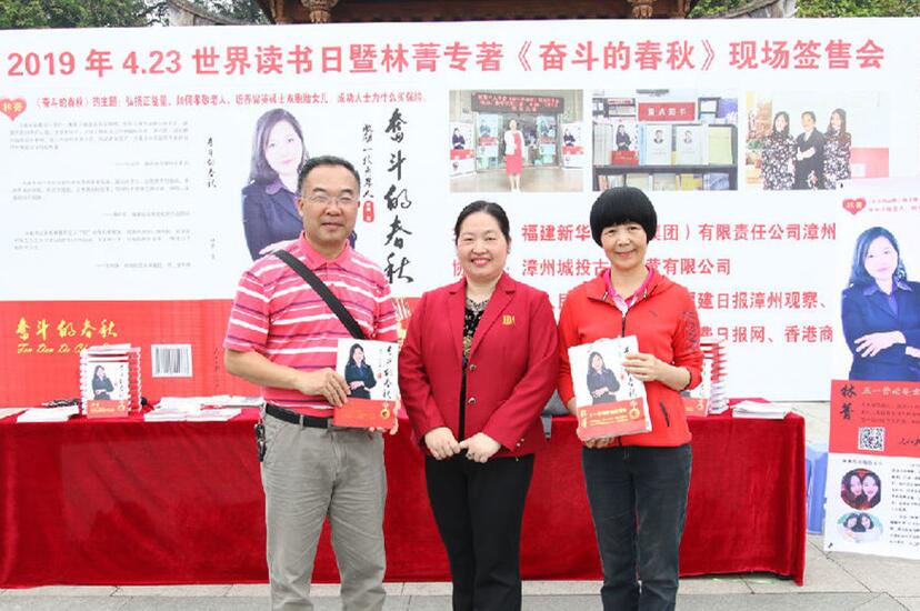【香港商報網訊】日前,為慶祝2019年世界讀書日,漳州市新華書店攜手漳州城投古城運營有限公司在漳州古城北廣場(中山公園旁)舉辦由人民日報出版社出版、面向全球發行的25萬字的林菁專著《奮鬥的春秋》現場簽售會。