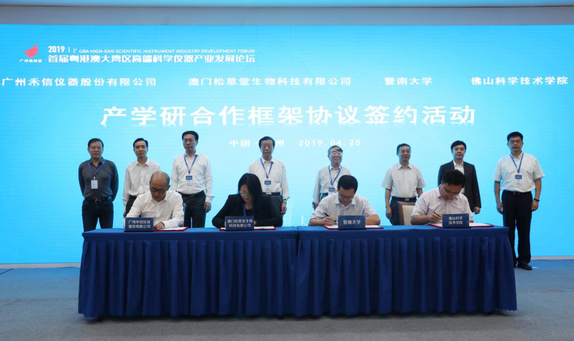 【香港商報網訊】4月25日首屆粵港澳大灣區高端科學儀器產業發展論壇在廣州高新區、廣州開發區、黃埔區舉行,廣東省粵港澳大灣區高端科學儀器產業促進會籌備工作宣告正式啟動,澳門松草堂生物科技有限公司等三家機構與禾信現場簽署產學研合作協議,高精度數據採集卡等三個項目簽署粵港澳大灣區高端科學儀器創新中心進駐意向。包括陳洪淵、柴之芳、徐濤三名中科院院士在內的國內外科學儀器領域專家學者、行業協會、產業鏈企業代表及國家、省、市、區相關領導齊聚一堂,共謀大灣區高端科學儀器產業發展,並發起《關於支持高端科學儀器產業發展的建議書》。