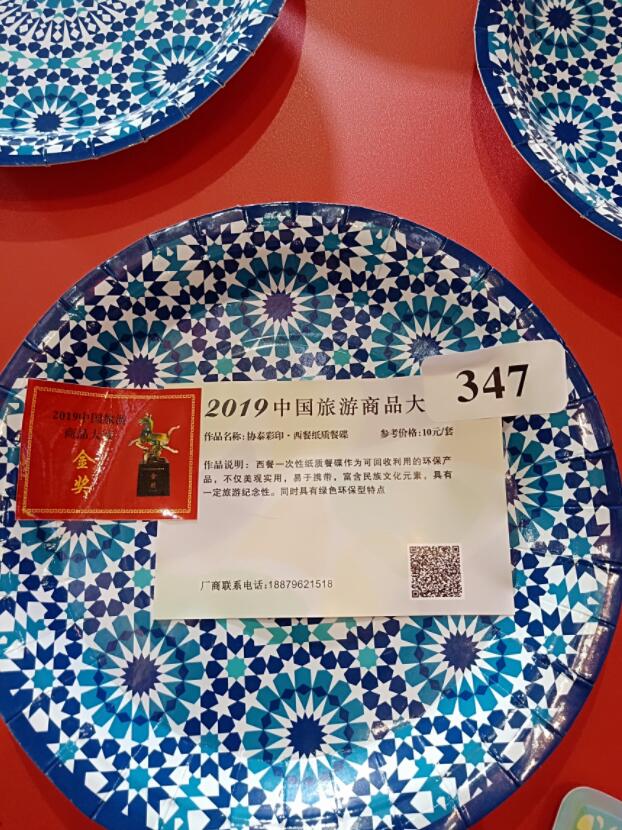 【香港商報網訊】記者 操端晶 報導:27日-30日,文化和旅遊部、中國國際貿易促進委員會、浙江省人民政府共同舉辦的第14屆中國義烏文化產品交易博覽會、第11屆中國國際旅遊商品博覽會在浙江義烏舉行,活動期間,舉辦了2019中國旅遊商品大賽,泰和縣選送的協泰彩印紙質餐碟獲得大賽最高獎——金獎。