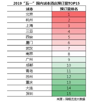 酒店接待量城市分佈方面,北京、杭州、上海、三亞、西安、廈門、武漢、南京、廣州、成都等城市假期期間的酒店接待量(含民宿、客棧等住宿單位)位居全國前列。三亞、麗江、杭州、上海、北京、蘇州等“五一”熱門旅遊目的地的酒店房價明顯高於同級城市,三亞酒店假期期間的平均房價為1031.5元/間夜,廣州地區酒店平均房價為842.6元/間夜,麗江酒店的平均房價為816.4元/間夜,杭州地區酒店平均房價為757.7元/間夜,上海地區酒店假期平均房價為751元/間夜,北京地區酒店假期平均房價為673.4元/間夜。
