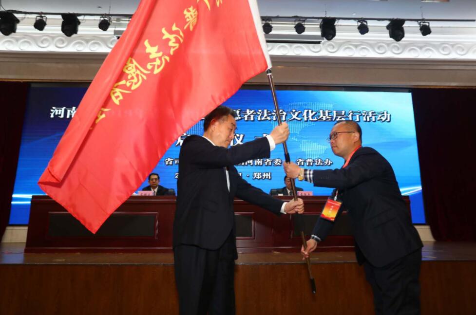【香港商報網訊】記者 楊彬 報導:4月28日,河南省法學會聯合河南省司法廳、共青團河南省委、河南省普法辦,共同舉行河南省2019年青年普法志願者法治文化基層行活動啟動儀式,並向各省轄市青年志願者代表授旗。
