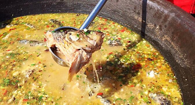 記者看到,在千人品江魚現場,9口大鍋依次排開,一鍋鍋的開江魚經過廚師們5個小時左右的精心燉制,真是肉香湯鮮,吃上一口魚肉,喝上一口魚湯,讓人立即產生「此味應是天上有」的感覺。