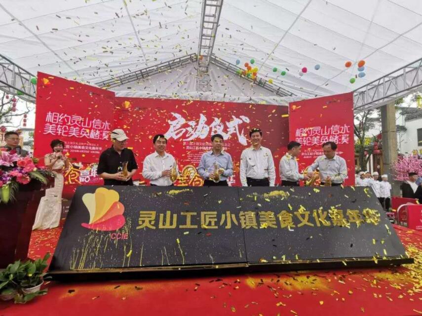 靈山工匠小鎮是本屆博覽會的美食、文化展區。靈山工匠小鎮有近300個展位展示國內外的各種美食小吃。您可以一邊啃著上饒雞腿,一邊吃着鉛山燒餅,還能嘗遍燈盞粿、清明粿等上饒各地的特色美食,也能嘗到江浙滬等地的美食、印度人製作的印度飛餅、土耳其人製作的雪糕。