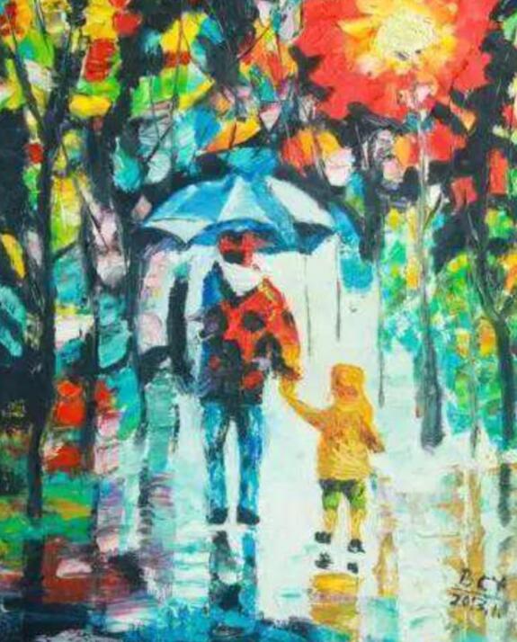 在父親看來,畫畫改變了孩子,一旦拿起畫筆,平常坐不住的畢昌煜就像變了一個人,經常一坐就是四五個小時,“我們都很心疼他,希望他休息一會,但他每次都要畫到自己滿意為止。” 更讓老師們驚訝的還是他在色彩方面的大膽運用,“今天天氣晴朗,心情好,他畫的色彩就明亮;反之,又是另一番面貌,同一個情境他能畫出不同的感覺。” 從7歲第一次接觸畫筆,12年來,只要拿起畫筆,不管是在家裏,還是身處外面嘈雜的環境,他都能像忘了自己般那麽安靜。2008年,母親趙靈芳依然清晰記得帶兒子去北京參加畫展的情形,在北京孤獨癥協會舉辦的798藝術區畫展中,兒子的畫作《愛在藍天下》引發了轟動,評委都不敢相信自己的眼睛,而且受到全國人大常委會副委員長顧秀蓮親自接見,“那也是昌煜的畫第一次被大家認可。” 2008年之前的畢昌煜還是一名普普通通的孤獨癥孩子。但2008年的一次機緣再次改變了他的人生。2008年4月2日是世界第一個“孤獨癥關註日”,北京市孤獨癥協會在798藝術區舉辦了首屆孤獨癥孩子畫展,畢昌煜的蠟筆畫入圍,自此他的畫被更多人所了解。而在十年之後的2018年7月份,米蘭世博會中國館舉辦的《無語言的交流——全球孤獨癥藝術作品巡回展》中,畢昌煜的作品亮相世博會中國館。