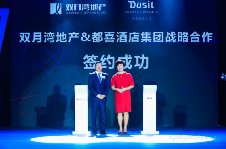 本次發佈會上雙月灣地產也與都喜泰麗酒店舉行了隆重的簽約儀式,都喜酒店集團是泰國皇家的傳奇品牌,有近70年酒店管理經驗,旗下酒店超過80家遍布全球,而都喜泰麗品牌是都喜酒店集團五星標準里最頂級的,即將入駐雙月灣雲頂海岸的都喜泰麗是全球第三家都喜泰麗酒店,也是片區少有的海邊低密野奢溫泉度假酒店,擁有137間別墅客房,部分客房可以做到溫泉入戶,泡泉觀海一次滿足。
