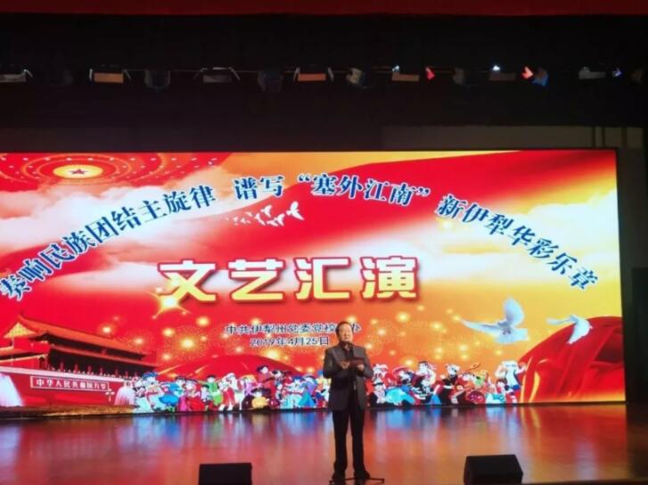 伊犁州委黨校常務副校長柴貴平為文藝匯演致辭
