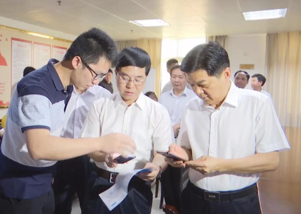 會議結束後,市長劉遠,市委常委、組織部長沈金水,市委常委、常務副市長張慧德,副市長陳水樹和相關部門負責人到系統開發辦公室與技術人員親切交流,並現場下載「漳州通」APP,體驗這一網上公共服務平台。