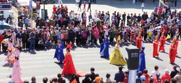 英姿颯爽的前導車隊為我們拉開了萬人盛裝行進表演的序幕;緊隨其後的是由鐵路樂團、佳大留學生、百腦匯super漫展示、東風區藝術團、春雨藝術團離退休藝術團組成的方陣,在鐵路樂團的管樂聲中,該方陣徐徐走來,他們意氣風發、昂首闊步,展示了新時代人民的新面貌;載着本屆杏花節評選出的杏花仙子車隊,一輛輛緩緩開來,受到了市民遊客的熱烈關注與追逐,這些杏花仙子們向人們展示青春靚麗的風姿;杏花仙子車隊之後,是由市廣場舞協會、火車頭藝術團、旗袍協會聯合方隊、郊區文廣旅局組成的第二方陣,廣場舞、合唱、旗袍走秀、民族風演繹,將人民群眾對生活的喜愛淋漓盡致地表達出來;接下來是裝飾成火車造型的樺南小火車花車。樺南森林蒸汽小火車有着百年歷史,目前由森鐵線路42公里,28噸蒸汽機車5台,通過森林小火車將森鐵文化園、農業產業科技園、向陽湖景區、大肚川水上樂園、七星峰國家森林公園打造成為五點一線的黃金旅遊線路。在樺南小火車花車之後,以樺南縣舞動奇蹟鬼步舞隊開陣的充滿活力、極具動感的鬼步表演,帶領着樺南縣老年協會軍鼓隊、希望之星藝術團、傳統文化藝術團、知青角藝術團組成的第三方陣走了過來;2號花車是文化產業協會花車,這輛花車體現了文旅融合元素,是展示佳木斯地方文化的窗口;由同心同樂藝術團、文化產業協會旗袍會、藍夢藝術團、夕陽紅藝術團、聯誼藝術團、越樂藝術團、東望自願者藝術團、樺川旗袍協會、佳木斯武術隊組成的第四方陣,是文與武的碰撞、傳統與現代的結合、柔美與力量的體現,盡展中國風的無窮魅力;3號花車是宏大醫院花車,由宏大醫院白衣天使領銜的第五方陣帶給現場觀眾的是精彩舞蹈和模特走秀;4號是君誠湯泉花車,以模特、旗袍秀和健身舞、健身操組成的第六方陣,向觀眾展現的是東方女子的無限柔情與現代女子的動感活力;5號花車湯原方圓國旅花車,黑龍江方圓國際旅遊集團以湯原縣文化旅遊資源為主,大力發展生態游、民俗游、紅色游、冰雪游、鄉村游,第七方陣的朝鮮舞、秧歌、舞蹈表演,給市民展示的不止是健美的體魄,更展現出積極向上的生活態度以及老驥伏櫪、志在千里的激情……;最後一輛花車是6號萬公館花車。6輛花車集中展現了佳木斯的歷史、文化、民俗風情、旅遊資源和經濟建設的豐碩成果。