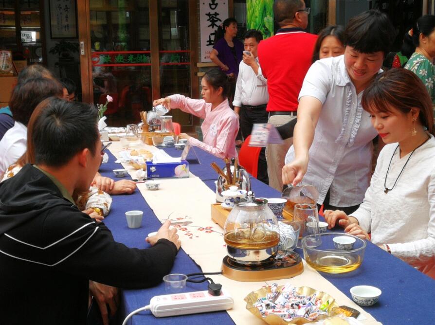 老茶品茗會聚集眾多茶友,現場舉行了品鑒老茶為主題的品茗活動,沖泡了04年今大福班章珍藏、01年簡體雲、14年七彩孔雀班章、大擺田古樹野生紅茶等多款經典老茶。此外,平時難得一見的稀有老茶紛紛登場:60年代雅安藏茶、80年代普洱熟茶、85年湖北青磚茶、90年代老白茶等,同時還邀請了各地區的茶專家到現場講解,讓到場的茶友除了品嘗到老茶醇厚濃郁的滋味,還學習到相關的茶文化知識。