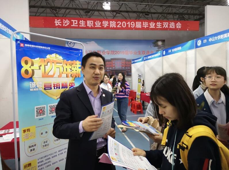 【香港商報網訊】記者 李銀明 報導:5月7日,長沙衞生職業學院2019屆畢業生雙選會在學院內隆重舉行。本次雙選會共吸引省內外130餘家用人單位前來招聘,向長沙衞生職業學院2019屆畢業生提供了臨床醫生、康復技師、調理師、護士、口腔護士、助產師、美容師、驗光師、口腔技師、藥劑師等4200餘個就業崗位。
