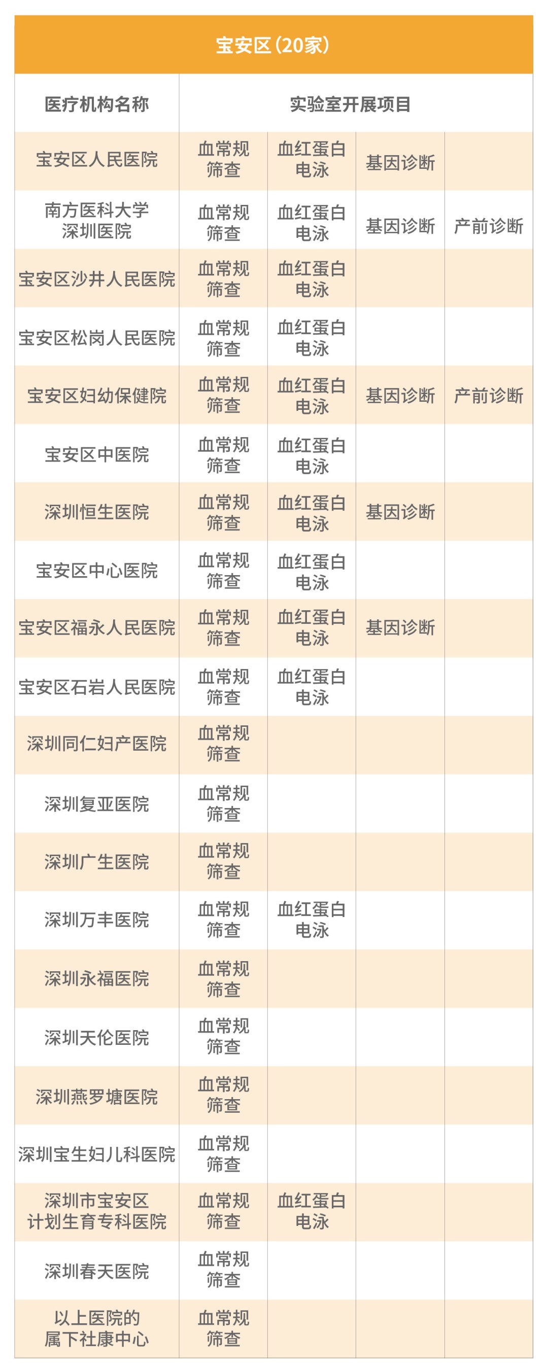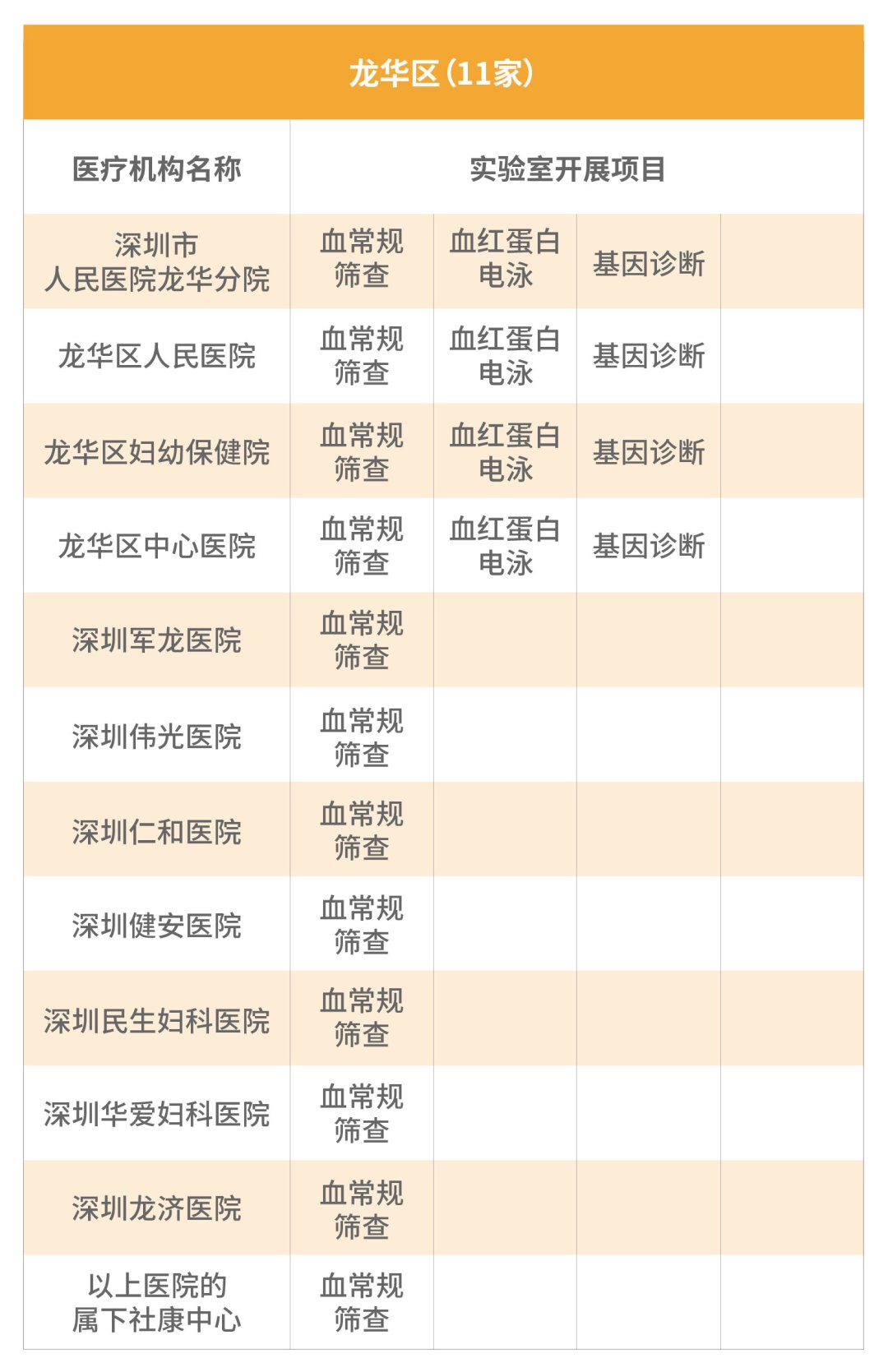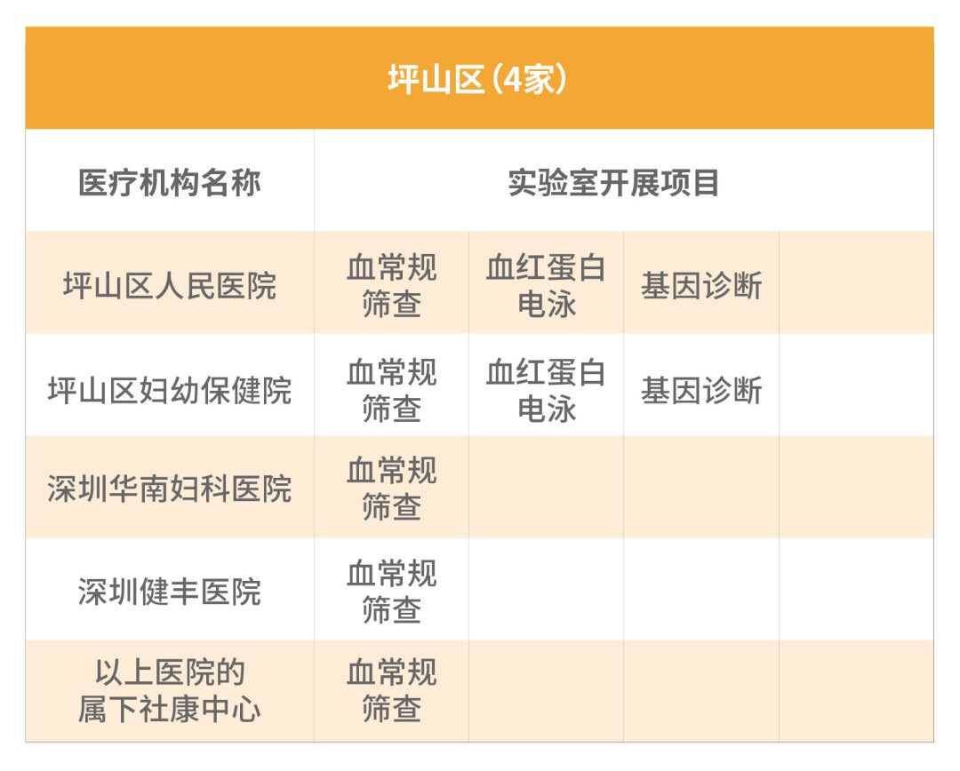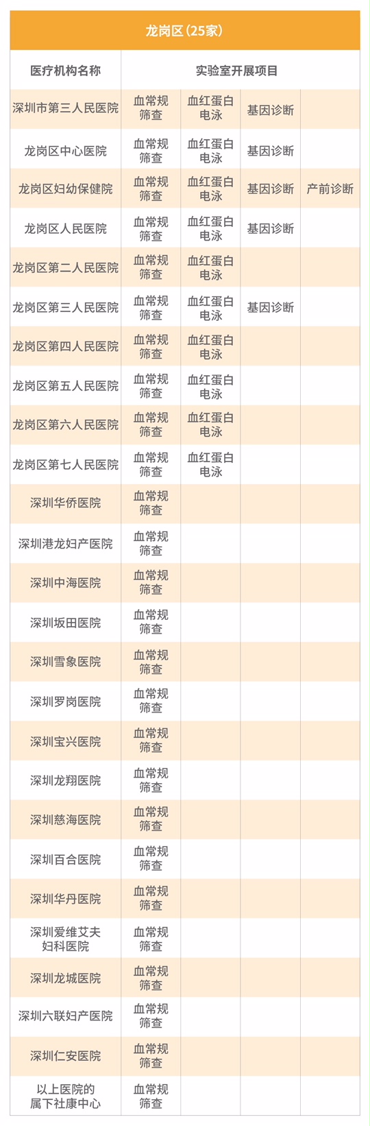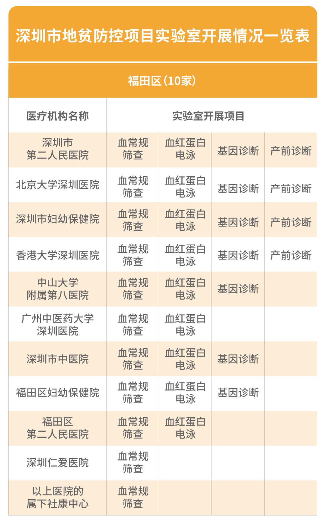 2017年起,深圳市針對常住孕婦夫婦開展免費地貧篩查項目,包括:新婚及計劃懷孕的深圳常住人口夫婦;孕前未接受地貧篩查的、夫婦雙方或一方為深圳常住人口的懷孕夫婦。