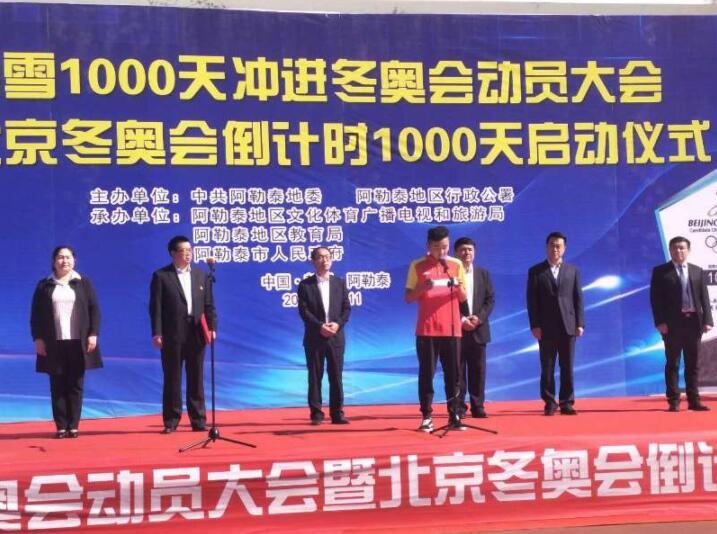 為貫徹落實習近平總書記“帶動三億人參與冰雪運動”的指示精神,進一步激發廣大幹部群眾參與冰雪運動的熱情,助力推進健康中國和全民健身國家戰略的實施,營造濃郁的迎接冬奧會氛圍,擴大“人類滑雪起源地”的影響力,5月11日,阿勒泰地區舉辦滑雪1000天沖進冬奧會動員大會暨北京冬奧會倒計時1000天啟動儀式。自治區體育局黨組成員、副局長居來提·喀斯木出席活動,地委委員、行署副專員王君安參加啟動儀式並作講話。