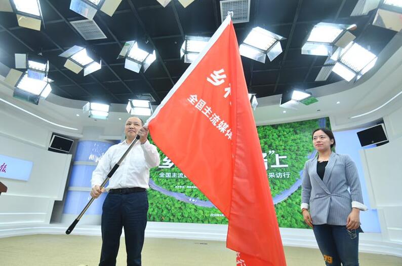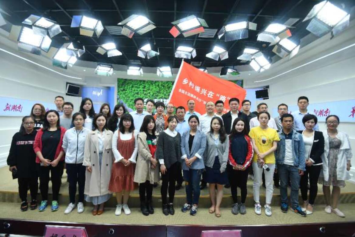 湖南日報社、長沙市委網信辦、長沙市交通運輸局的領導共同點擊上線「鄉村振興在『路』上」網絡專題,長沙市交通運輸局黨委書記、局長胡嶽龍為媒體團代表授旗 。