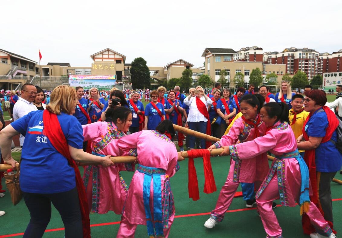 「海洋」全俄兒童中心的教師們亲自體驗了羌紅畫、版畫、中國書法,還觀看了北川特色表演,精彩的的舞蹈表演博得了俄羅斯客人的陣陣掌聲。北川特色的體育運動「推桿」,让代表团成员感受到民族文化的獨特魅力。