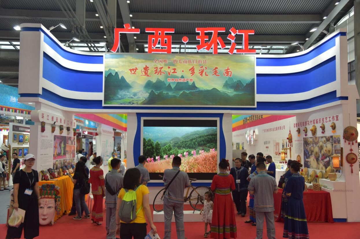 近年來,環江積極通過深圳文博會搭建與外界交流的橋樑,宣傳、展示環江極具特色的秀美生態風光、濃郁民族風情、豐厚歷史文化底蘊。花竹帽、儺面具、韋氏銅鼓、竹單車等民族產品逐步遠銷美國、丹麥、瑞典、東南亞國家以及香港、澳門等地區,毛南歌舞表演也先後受邀到美國、德國、泰國、越南等國家演出。