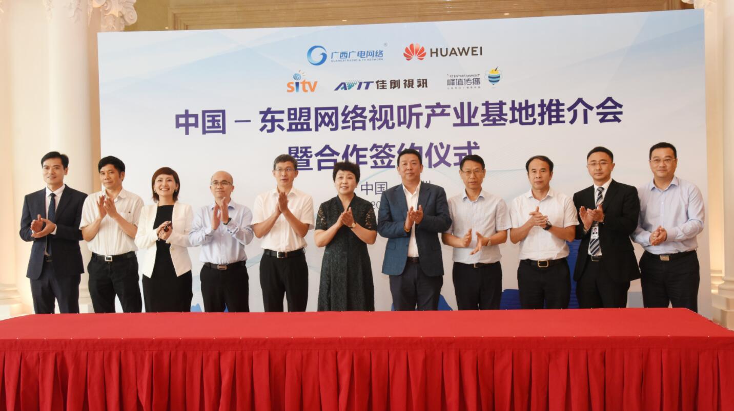 【香港商報網訊】記者 歐陽萍 報導:5月17日,中國-東盟網絡視聽產業基地推介會暨合作簽約儀式在深圳華為總部舉行。廣西廣電網絡公司與華為技術有限公司、深圳市佳創視訊技術股份有限公司、上海文廣互動電視有限公司、南寧峰值文化傳播有限公司,基於中國-東盟網絡視聽產業基地(廣西新媒體中心),分別就5G合作項目、VR合作項目、有線電視內容製作、面向東盟視聽節目輸出等內容簽訂合作協議。