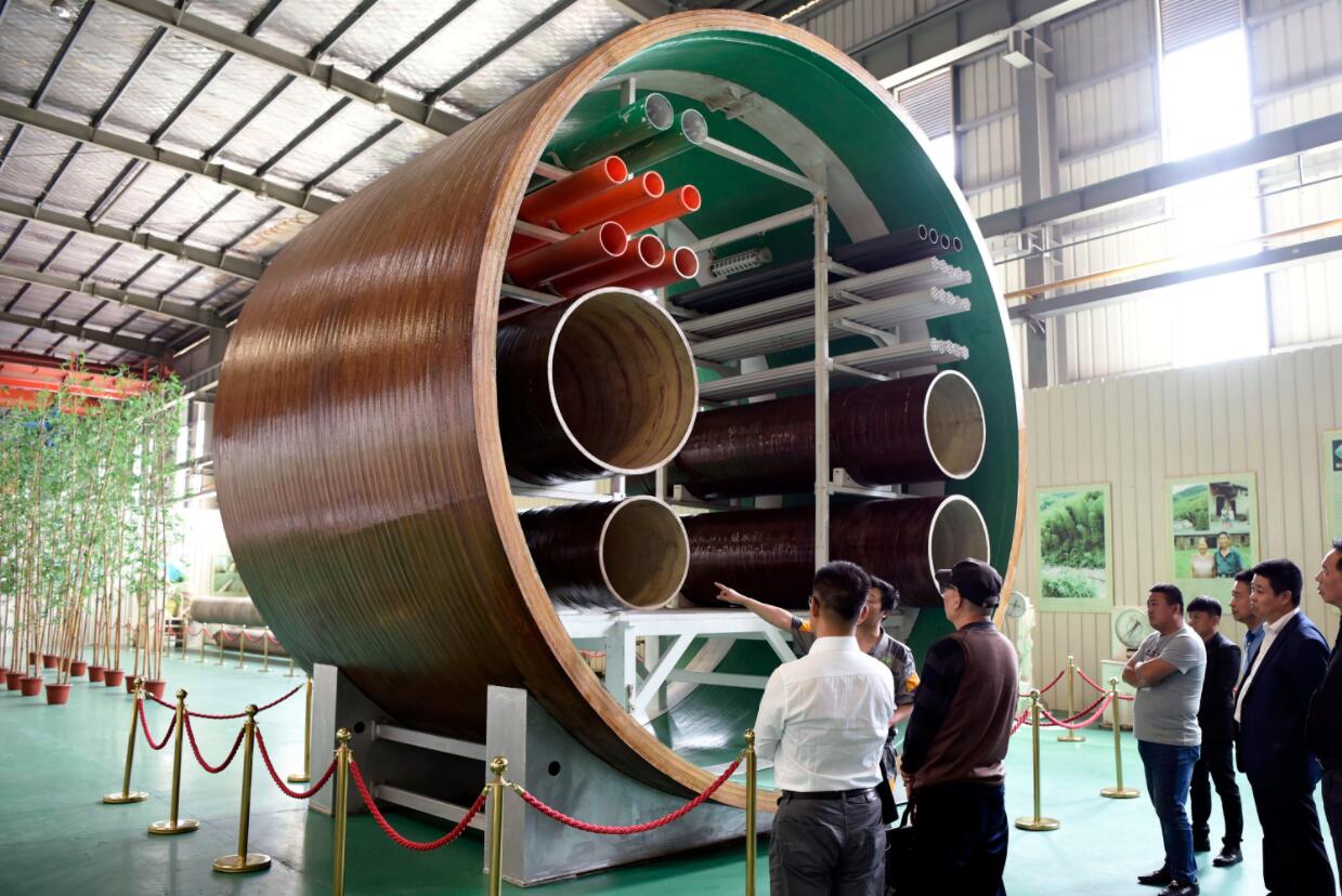 據公司副董事長、總經理藍甯介紹,目前,竹纏繞複合材料技術已被中國鐵建等大型央企引進,有計劃地在全國各省建設生產基地,本月投產的河南淅川竹纏繞複合管生產基地,是繼湖北襄陽、內蒙古烏海、山東臨沂、福建龍岩、廣西玉林之後又一個成功運用該技術的項目。根據國家林草局規劃,五年內在全國計畫佈局1000萬噸的竹纏繞複合材料生產基地。