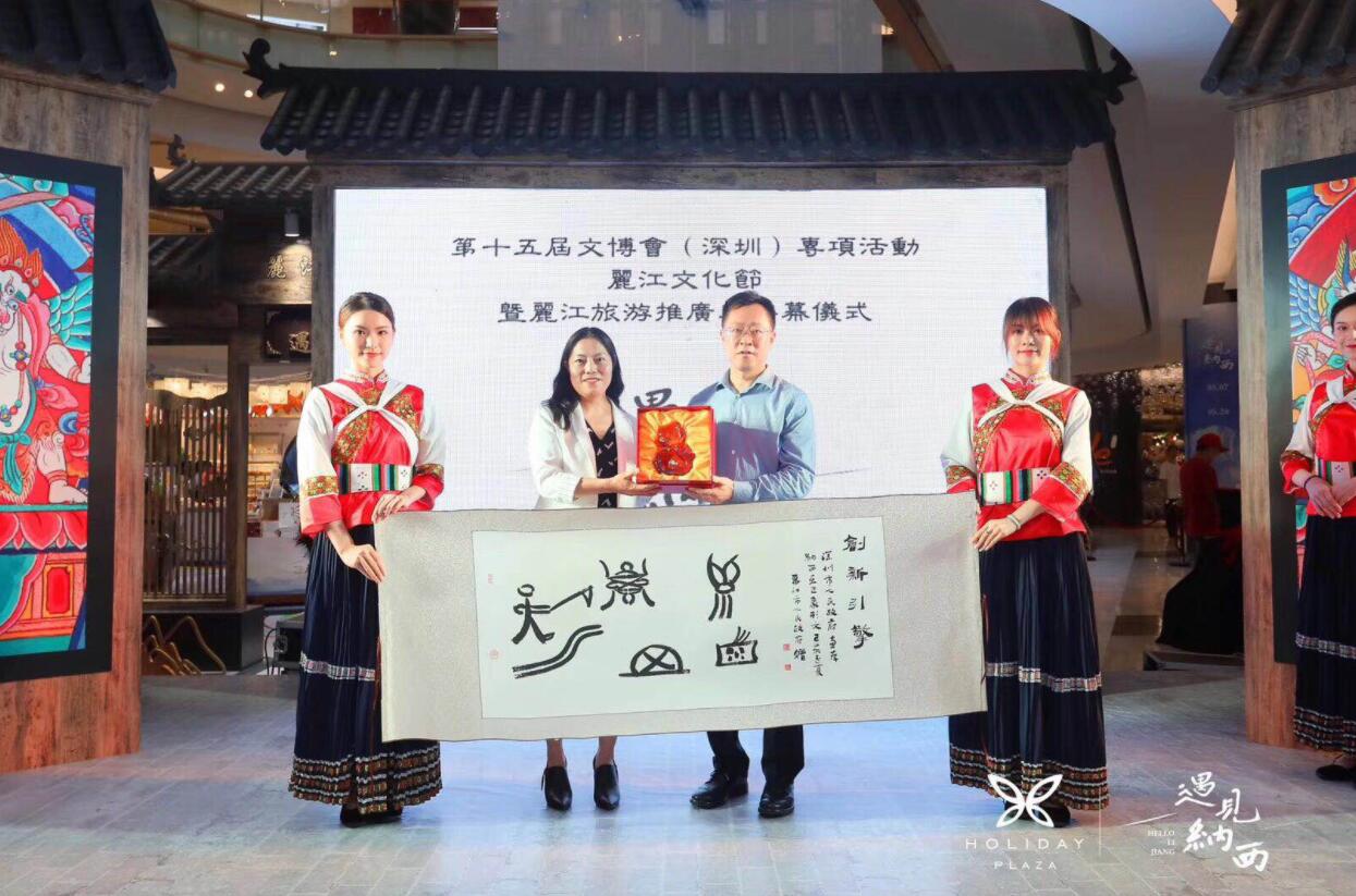 5月18日上午, 益田假日廣場麗江文化節暨深圳第十五屆文博會專項活動在商場中庭隆重舉行。麗江市委副書記、市委宣傳部部長何玉蘭,麗江市人民政府黨組成員王麗萍,麗江市委宣傳部副部長唐佳瓊等麗江市委領導,深圳市委宣傳部常務副部長陳金海,深圳市南山區委常委、宣傳部部長廖子彬,深圳市南山區政協副主席、南山區教育局局長劉根平、南山區文產辦副主任孫憲章等領導,以及益田集團董事局主席吳力群,益田旅遊商業集團總裁劉雅娟,非遺傳承大師和鈞及深圳20餘家媒體出席活動。