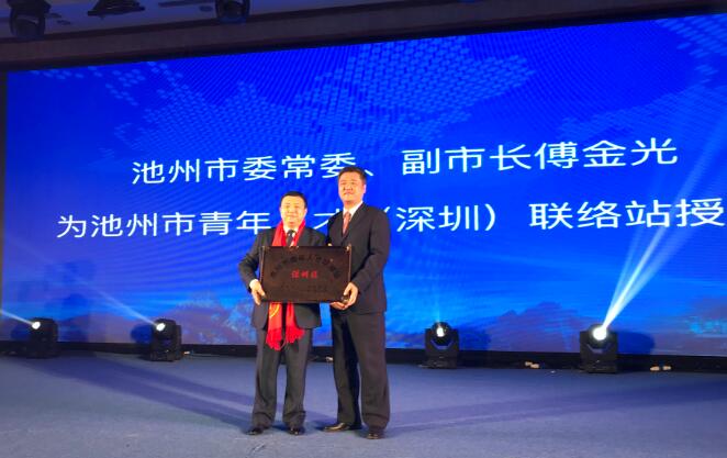 图四:池州市委常委、副市长傅金光,为池州市青年人才(深圳)联络站授牌