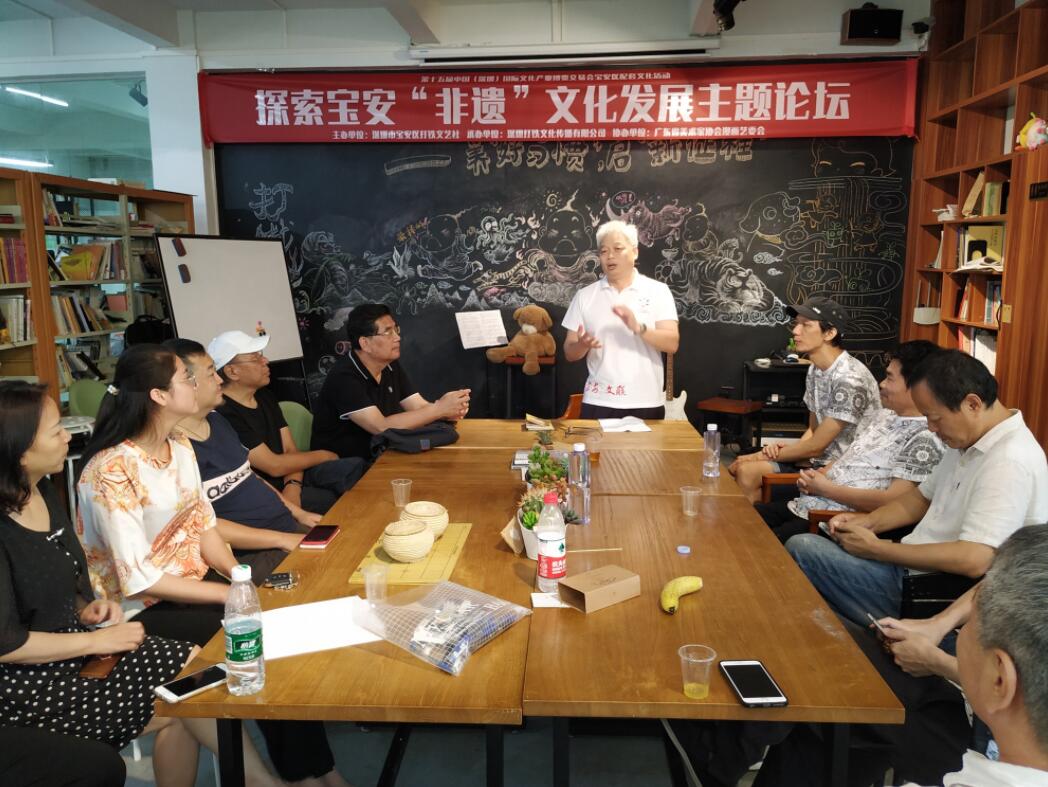 當天下午,來自市內外的藝術家及專家學者等齊聚打鐵漫畫書吧,舉行「探索寶安非遺文化發展」主題論壇。國家級非物質文化遺產汝瓷燒制技藝傳承人陶一、深圳市寶安區文藝家協會副主席、寶安區民間文藝家協會西鄉分會會長郭喜忠、打鐵文藝社社長鄧微觀、著名漫畫家莊錫龍、王建明、顏慶雄等紛紛發言,就寶安「非遺」傳承與發展獻計獻策,對寶安「非遺」如何更好的融入人民生活,如何跨界融合發展提出大膽建議,也對打鐵藝術家在「非遺」基礎上的藝術創作表示認可。