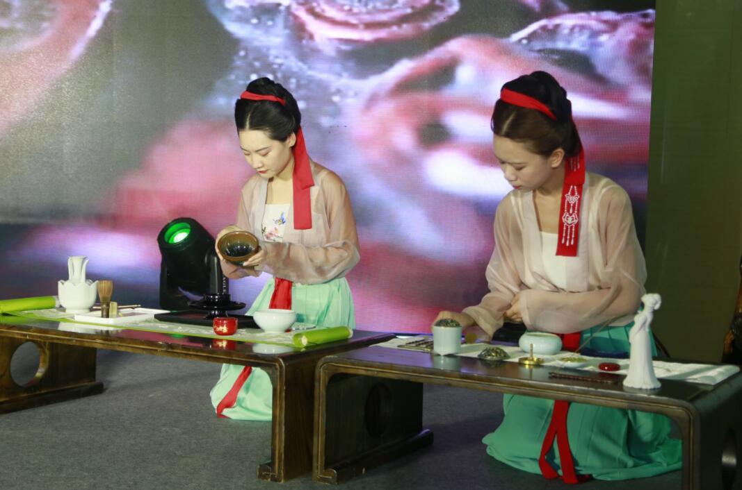 還未走入會場,悠悠茶香已然襲來。流傳杭州茶鄉的民間傳統歌舞採茶舞,樂曲跳躍活潑、舞姿輕盈優美,讓人聯想起採茶的情景。茶藝師現場表演,素衣翩躚、汲水烹茶、清香縹緲,一語一行,盡現茶藝風采。