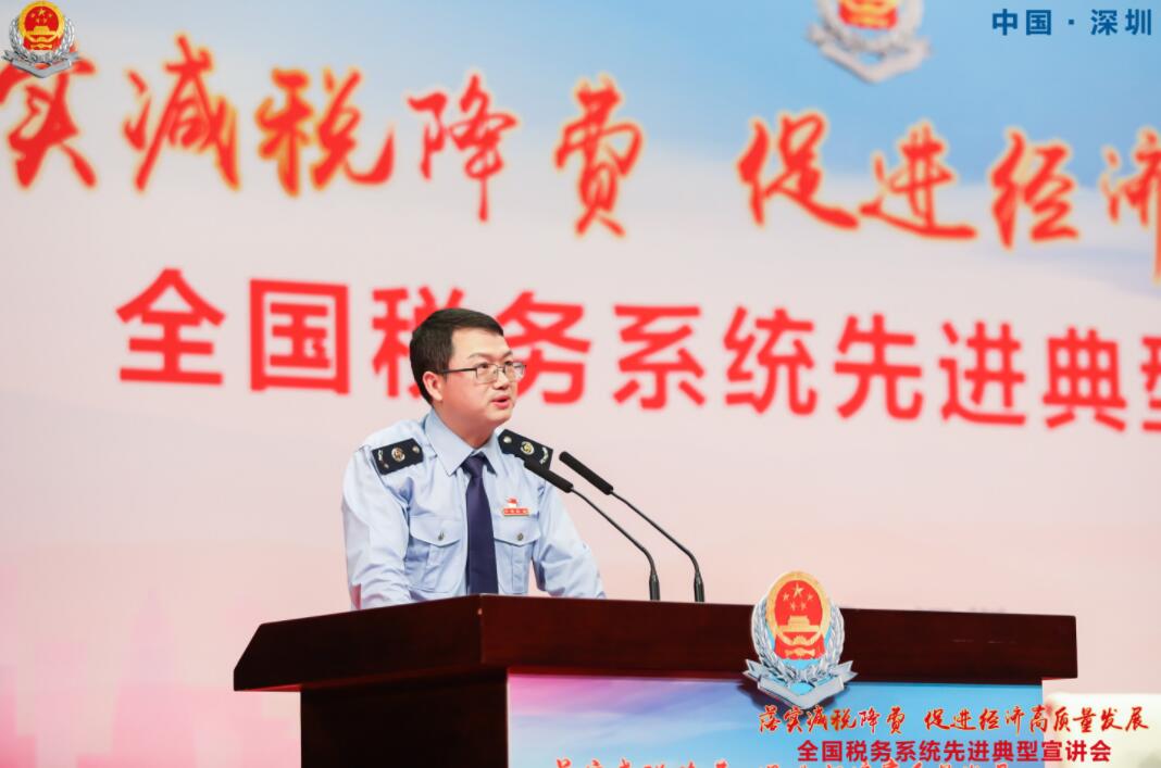 擁有「永遠的大師兄」稱號的深圳市稅務局納稅服務處主任科員付鐵盾也是此次宣講的先進模範之一。入職19年的他是深圳稅務系統最早的12366諮詢員,談到納稅輔導,他滿懷深情:「我見證了深圳稅務12366熱線接通量從每年1萬通到160萬通的巨大飛躍,從人工話務到智能諮詢、從現場培訓到在線直播的日新月異,我為是深稅人而驕傲自豪。」