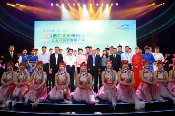 5月17日上午,在深圳市廣電集團1800演播廳,鄂爾多斯文化神州行走進深圳旅遊推介會在烏蘭牧騎悠揚的馬頭琴和曼妙的舞姿中正式拉開了序幕。 鄂爾多斯市委常委、宣傳部長蘇翠芳在致辭中表示:鄂爾多斯民族文化璀璨奪目、草原風情絢麗多彩、自然風光神奇獨特,境內既有成吉思汗陵、秦直道、薩拉烏蘇文化遺址、阿爾寨石窟等著名的歷史文化遺迹,又有成吉思汗祭典、鄂爾多斯婚禮、鄂爾多斯短調民歌、漫瀚調、古如歌等國家級非物質文化遺產,還有響沙灣、黃河大峽谷、生態草原等自然景觀以及以全國首個4A級城市景區康巴什區為代表的城市景觀等眾多旅遊熱點和資源。近年來,鄂爾多斯市圍繞創建國家級文化生態保護區和國家全域旅遊示範區,大力發展文化旅遊產業,形成了「天驕聖地、大漠風光、民族風情、休閑避暑」四大類旅遊產品,成功打造國家5A級景區2家,4A級景區28家。