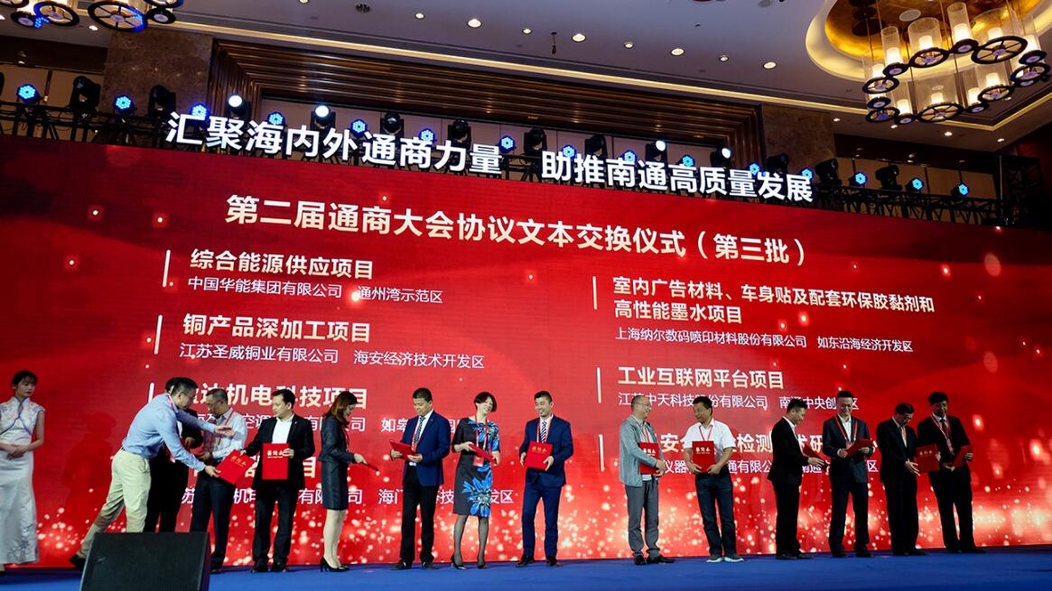 活動現場,第二屆通商大會十大傑出通商和2019「張謇杯」傑出企業家頒獎,還進行了政企通 APP 上線儀式和重大項目簽約儀式。現場共簽約了 28 個項目,簽約項目中,產業類項目 19 個,總投資 343 億元,科技研發類項目 9 個。大會期間,還舉行通商總會一屆三次理事會、海外僑團南通峰會、通商故里行暨海外知名僑領僑商南通行等活動。(杜林、趙振華)