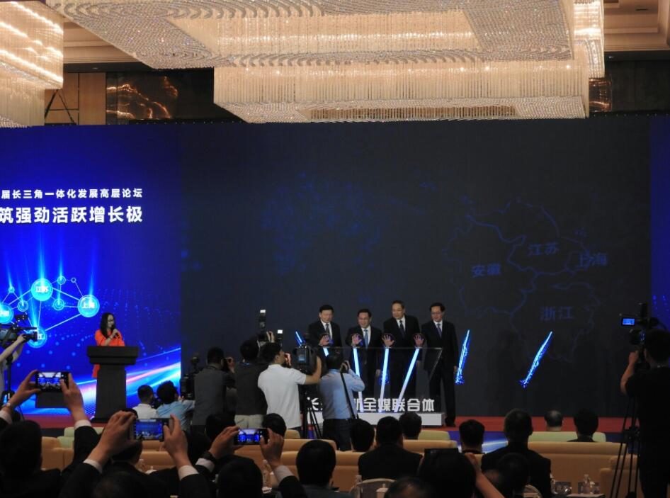 滬皖蘇浙主要領導共同為聯合體的成立按下啟動鍵(柏永/攝)
